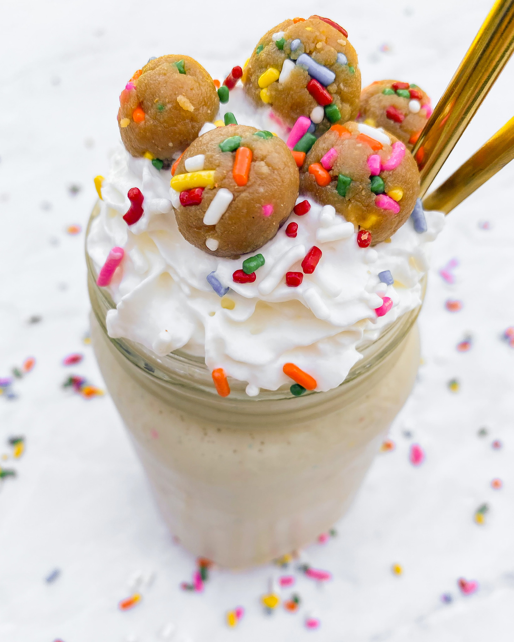 This Healthy Birthday Cake Batter Milkshake will make you want to celebrate!