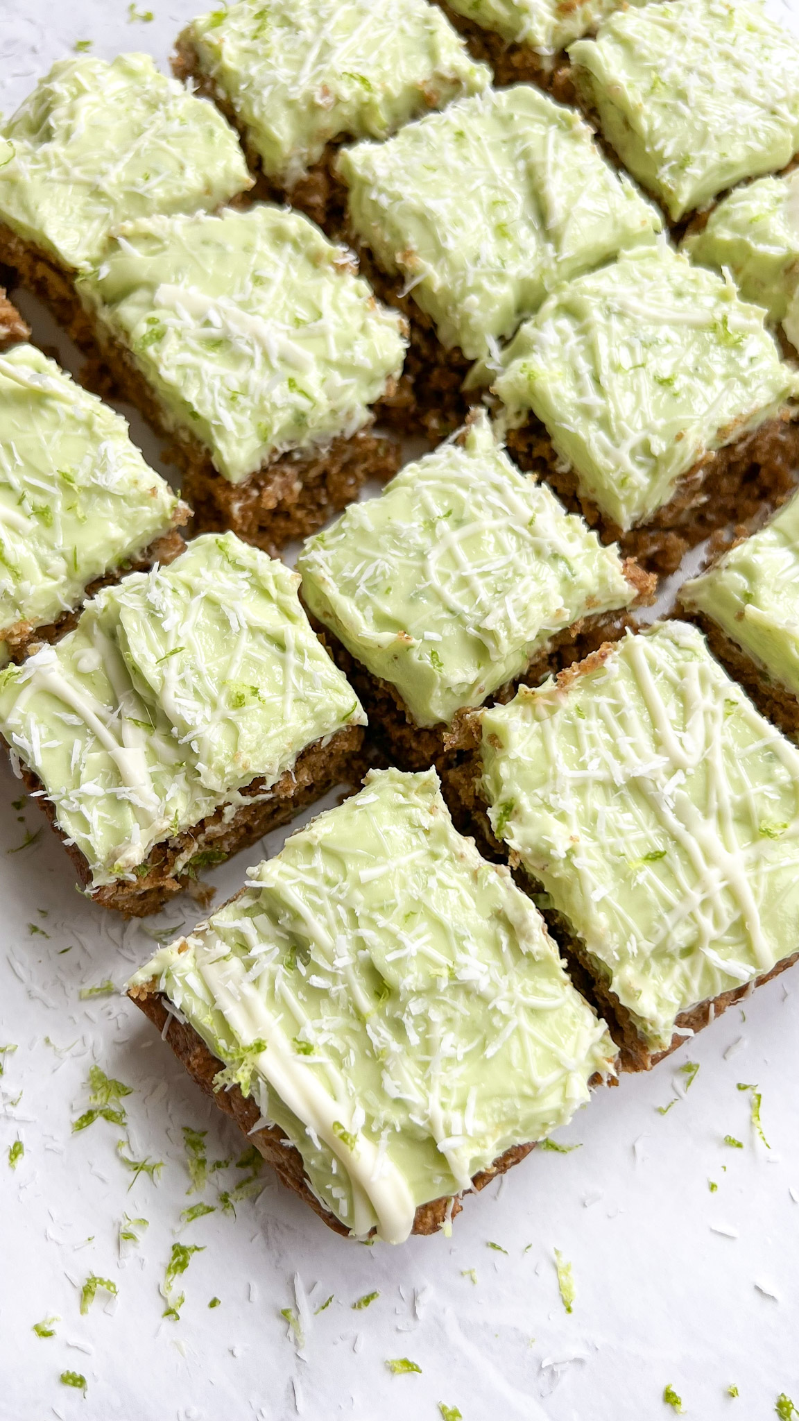 • White chocolate chips: we achieve the dessert-for-breakfast vibes of these healthy lime coconut bars by pulsing white chocolate chips into the batter of these bars. ⁣