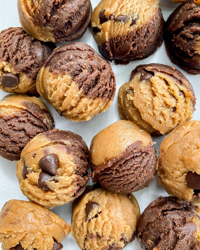 - To one half, mix in 2 tablespoons of sprinkles, then roll into balls the size of the chunks you find in cookie dough ice cream.