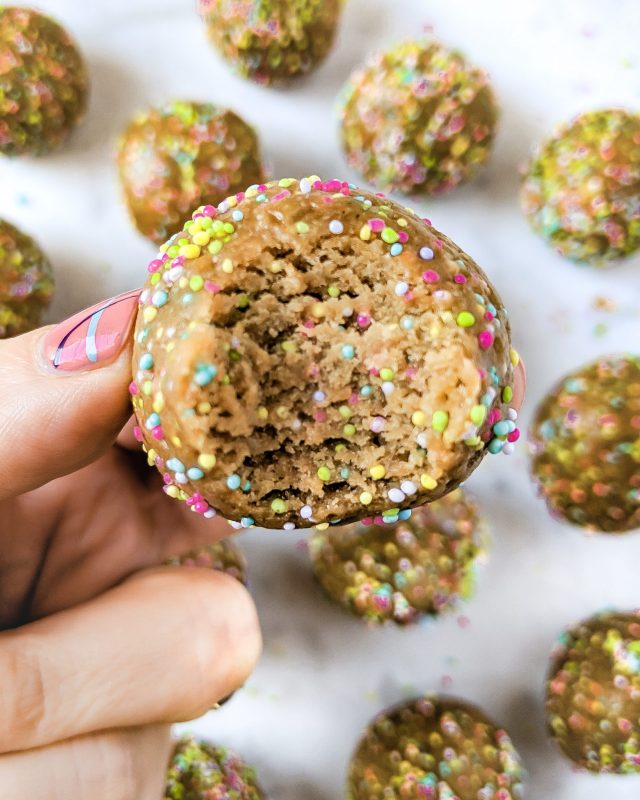 These healthy birthday cake energy balls are my favorite healthy snack. Is it because they taste JUST like Milk Bar’s famous Birthday Truffles? Or is it because they’re totally vegan, refined sugar free, gluten-free, and filled with nutrient-rich ingredients that come together in three steps? Yes, and yes. This no bake vegan dessert recipe does more than give you energy. It will also help balance blood sugar, hormones, and boost gut health – all while tasting like you’re splurging on dessert.