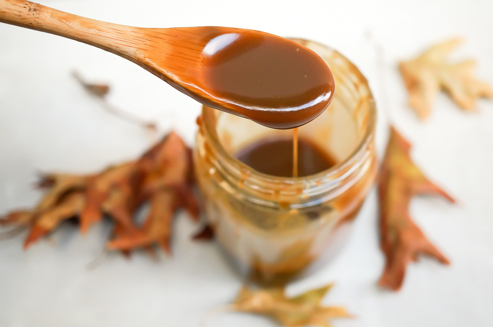 Coconut sugar is one of the secrets to this caramel sauce, replacing typical refined sugar, while coconut milk replaces condensed milk. Coconut milk is a wonderful dairy-free alternative, and loaded with fats that help you actually lose weight. Coconut sugar is a wonderful ingredient as well, and one of my go-tos for refined sugar free healthy desserts.