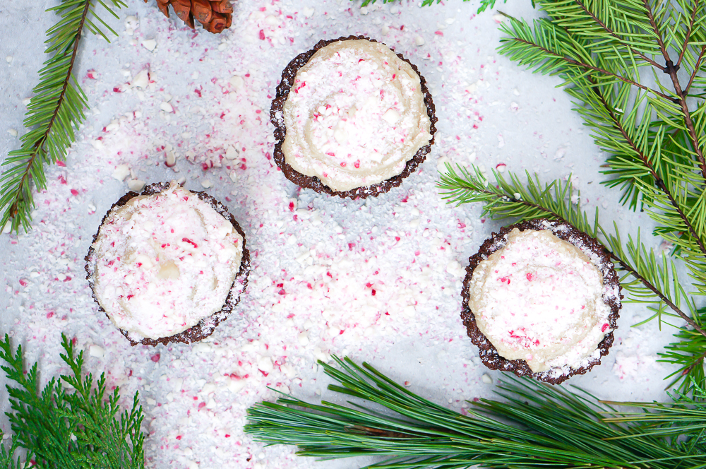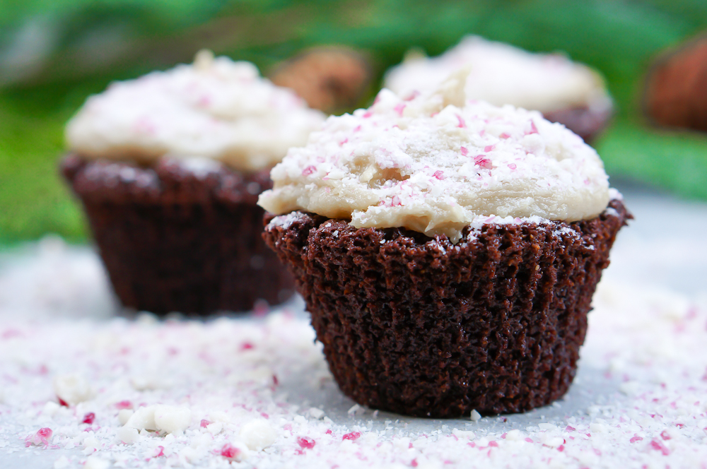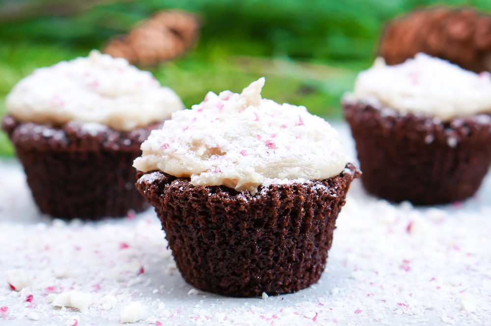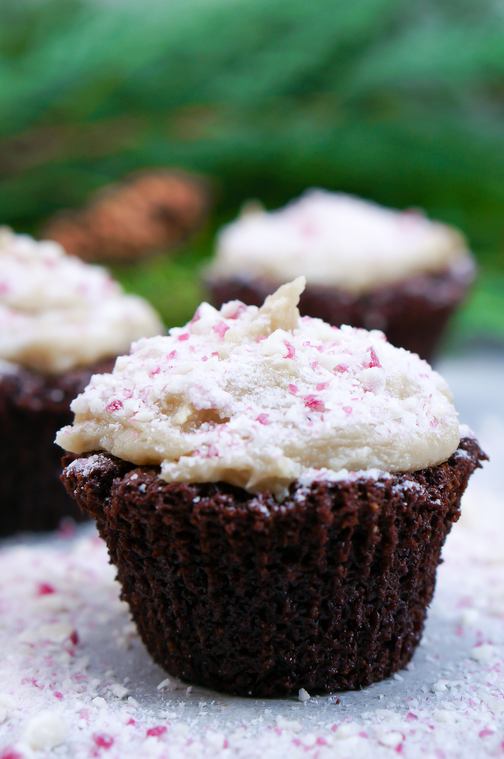 Snow-dusted Chocolate Peppermint Cupcakes (Gluten Free, Grain Free, Refined Sugar Free)