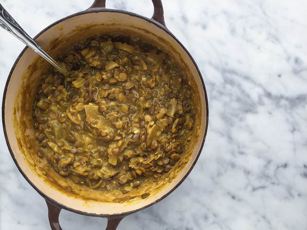 Garlic is one of the best anti-bacterial, anti-viral and anti-fungal ingredients around, besting bacteria that even antibiotics have trouble with. It’s great when you have a cold or flu, but also to generally keep your immune system in tip-top shape (medical researchers are engaged in preliminary, promising trials as to its anti-cancer effects). The only problem? Garlic’s health-benefitting compound, called allicin, takes up to ten minutes after crushing or mincing the garlic clove to form, and it’s very sensitive to heat – so many of the recipes that utilize garlic end up destroying much of its goodness (it also burns very quickly – it kills me to see people throw garlic in their onion sauté at the beginning of making a soup or sauce, as its fragrant spice will often turn bitter with overcooking). This recipe adds the garlic at the very end, after the heat has been turned off. The warmth of the lentil mixture cooks the garlic very lightly, just enough to reduce its bite while preserving all of its wonderful healthy properties.