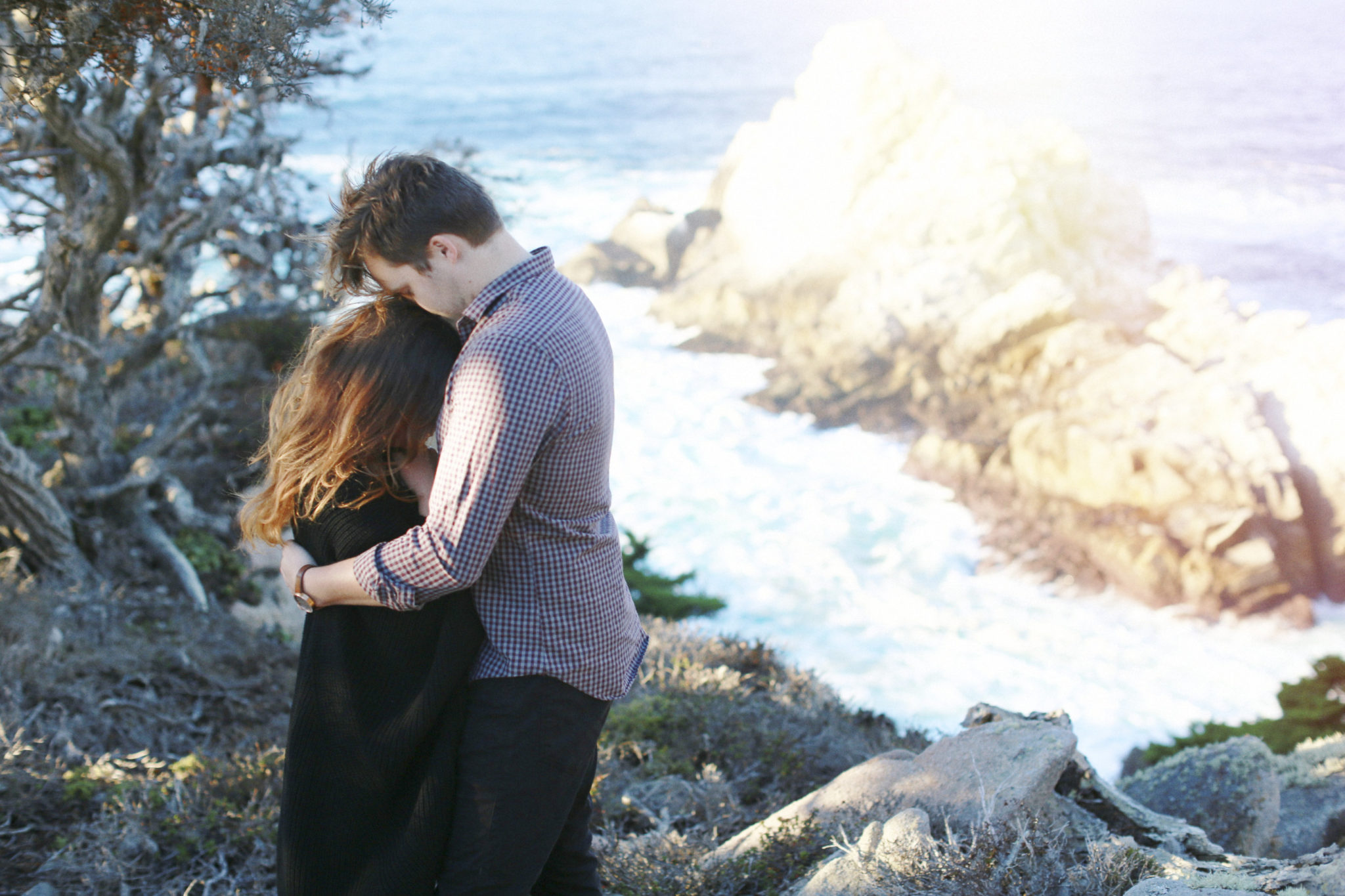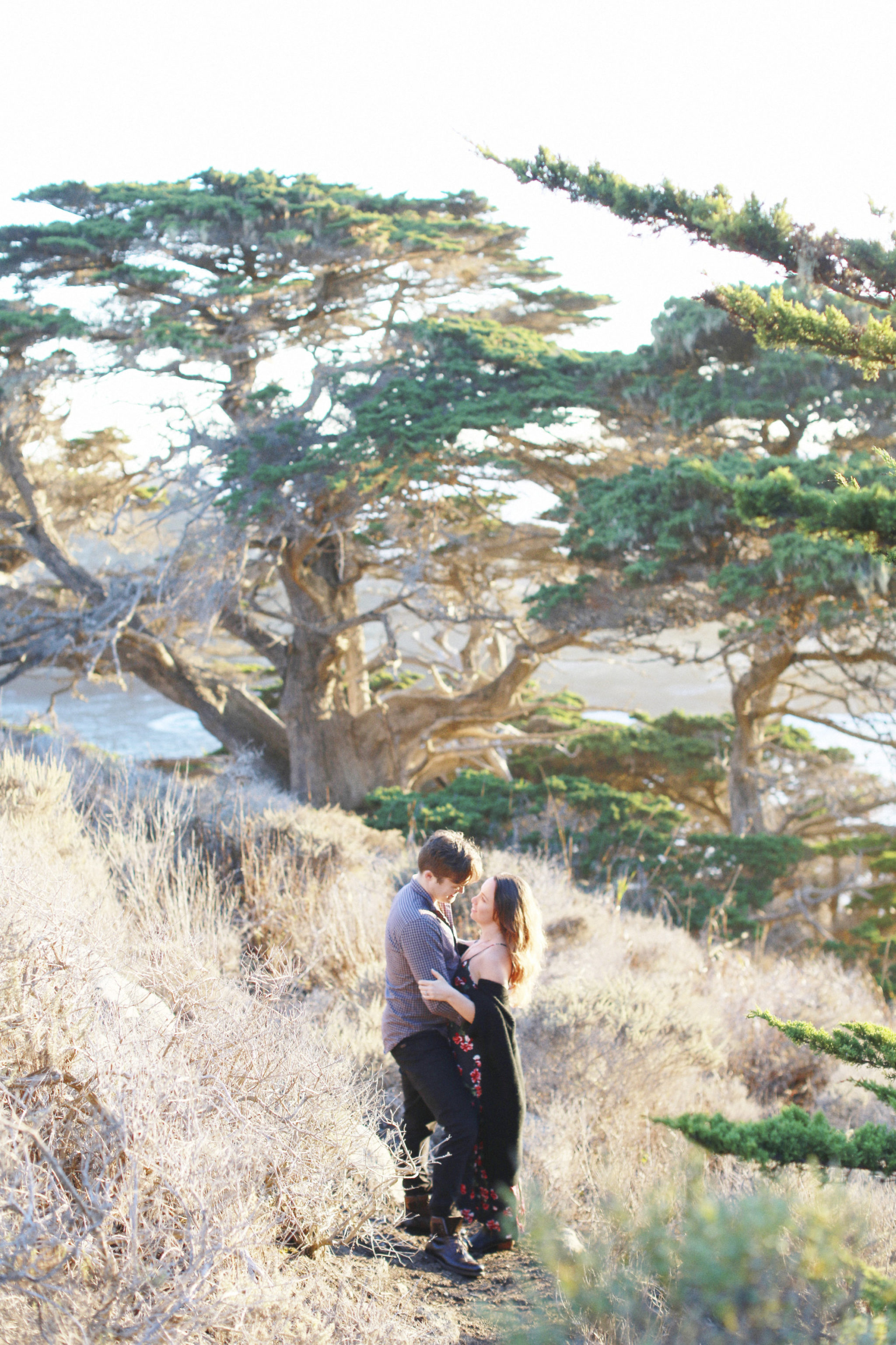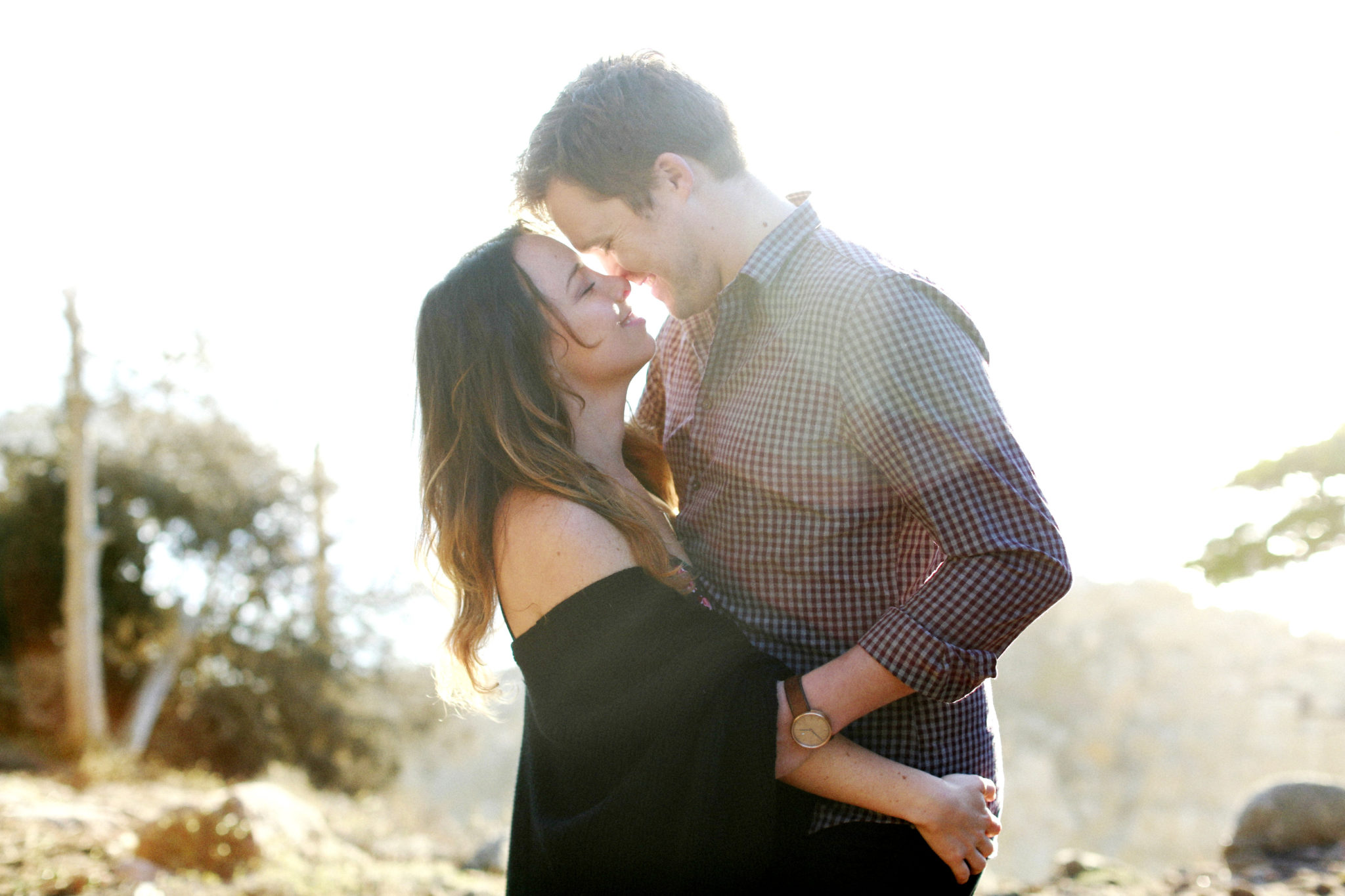 We took these engagement photos in Point Lobos State Park, just south of Carmel on the California coast. While I love the glamorous photos so many of my friends have done, we really wanted our shoot to feel like us – natural, a little messy, a lot of fun. We goofed around on the rocks and made each other laugh when our photographers prompted us to gaze romantically at each other. We’re so happy with how our photos, taken by the amazing Christian + Reinna (with an assist from their super fluffy, bow-tie wearing dog), turned out. Check out a few below, and then head on over to Style Me Pretty for all of the details!