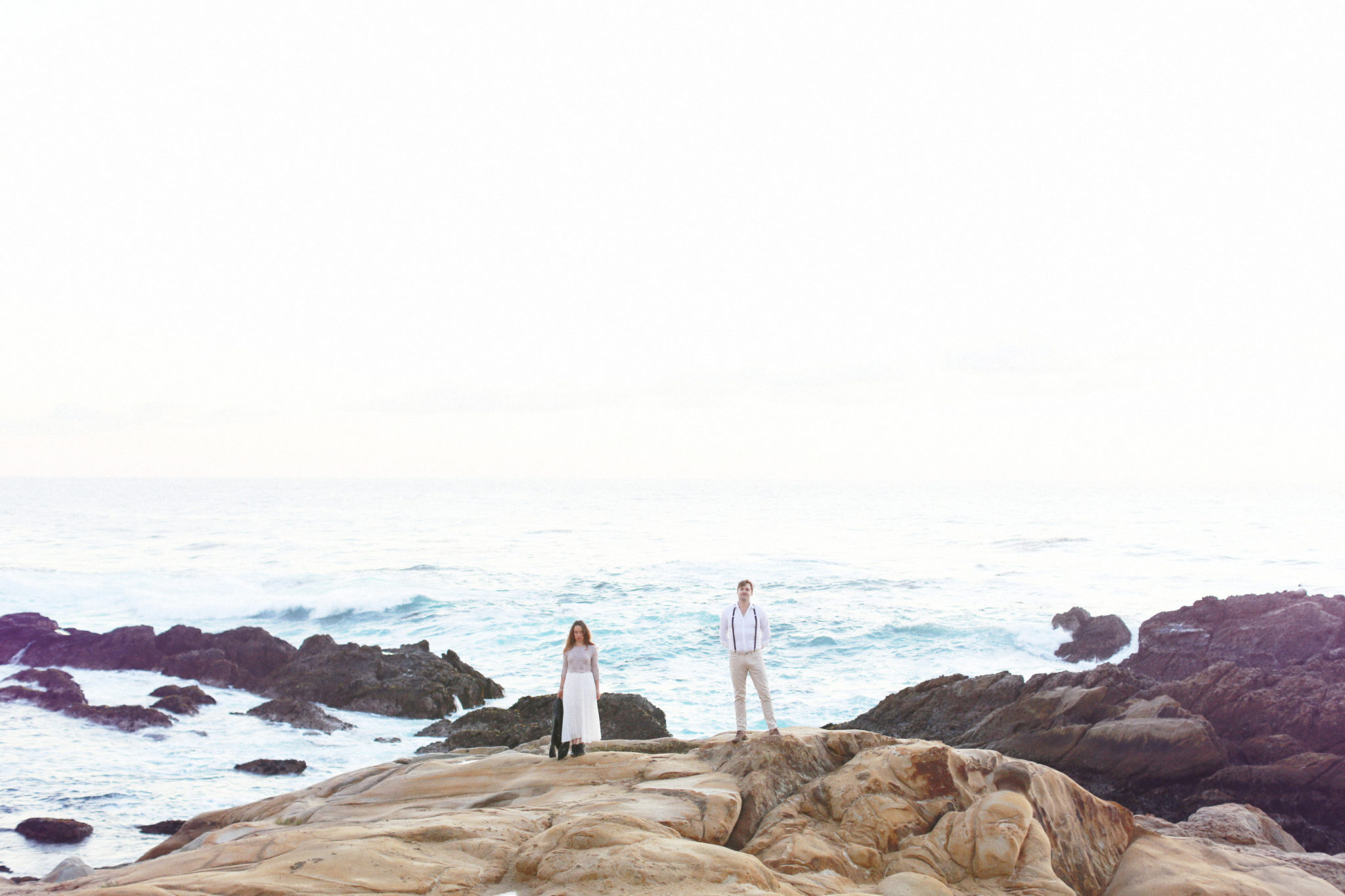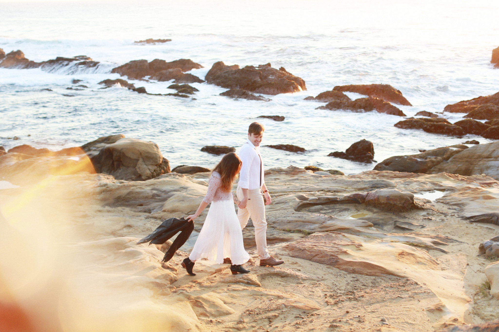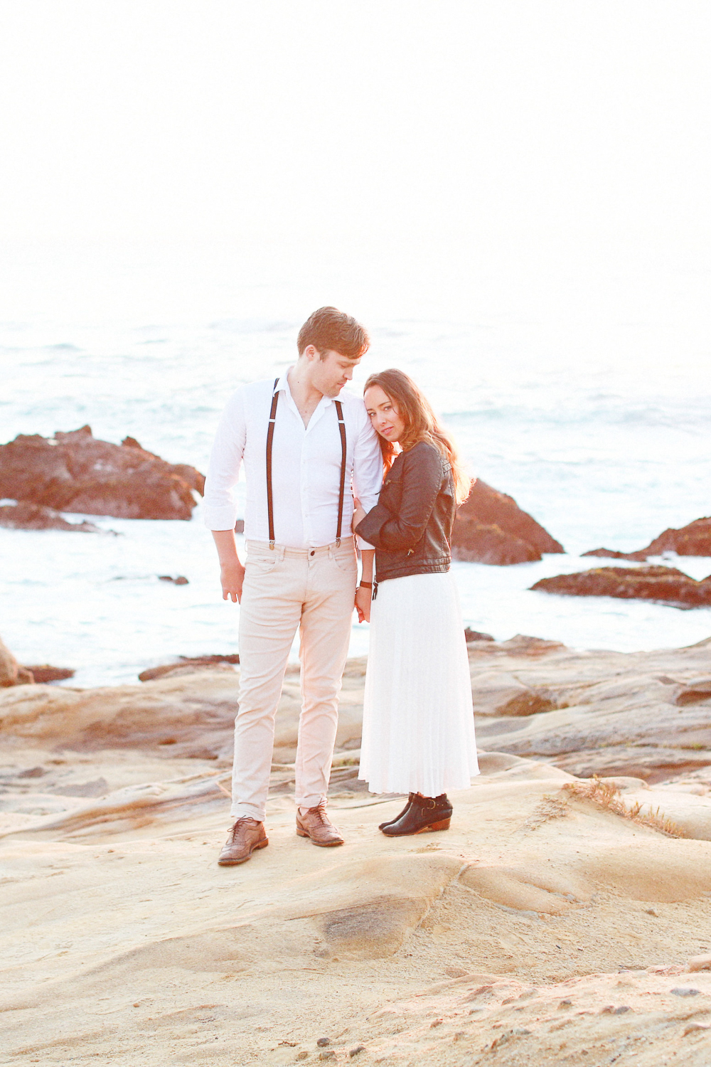 We took these engagement photos in Point Lobos State Park, just south of Carmel on the California coast. While I love the glamorous photos so many of my friends have done, we really wanted our shoot to feel like us – natural, a little messy, a lot of fun. We goofed around on the rocks and made each other laugh when our photographers prompted us to gaze romantically at each other. We’re so happy with how our photos, taken by the amazing Christian + Reinna (with an assist from their super fluffy, bow-tie wearing dog), turned out. Check out a few below, and then head on over to Style Me Pretty for all of the details!