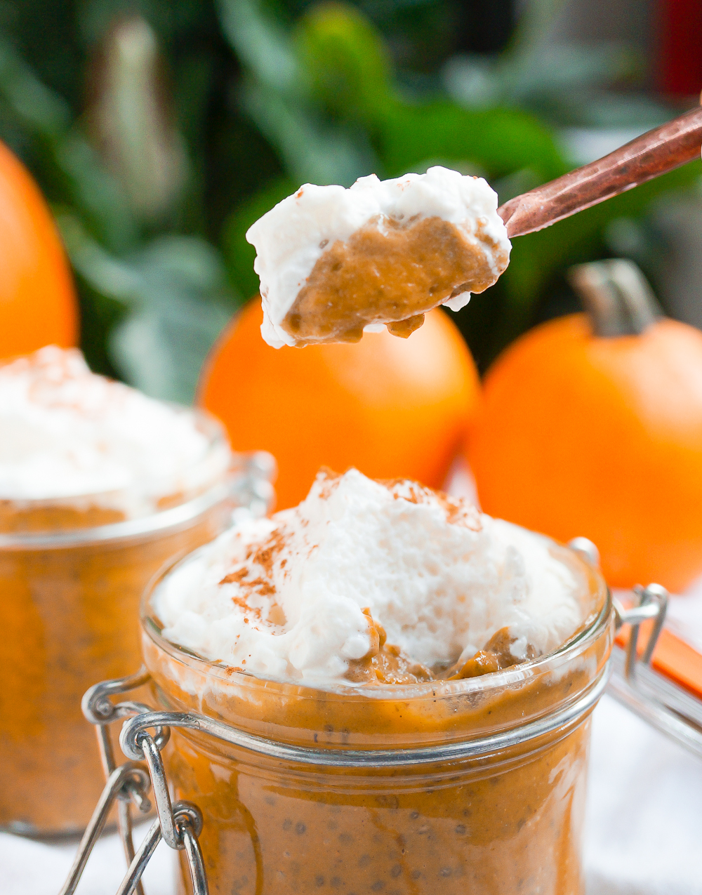 This pumpkin pie chia pudding recipe makes enough for one, but feel free to double or triple it to eat throughout the week. Also, I have a really huge giveaway coming up – make sure you’re subscribed so you don’t miss the announcement!