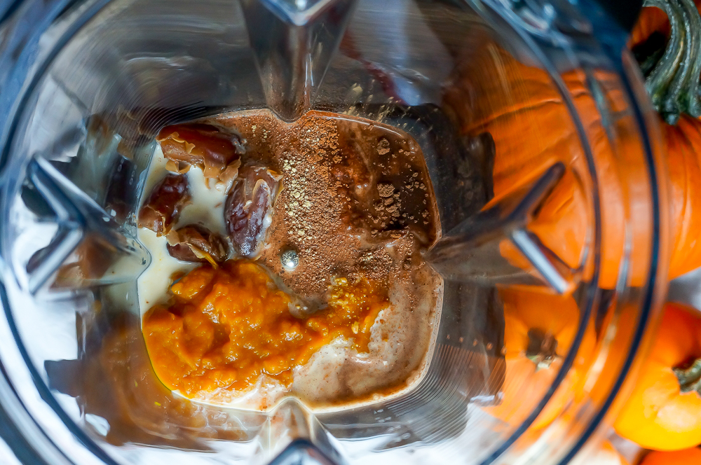 This tastes almost exactly like pumpkin pie filling, you guys. The chia seeds expand and give it that dense, custard-y texture, and the pumpkin and spices give that wonderful, delicious fall feeling. It’s naturally gluten free, vegan, and refined sugar free (thanks to the use of dates as a sweetener), and the pumpkin, when you take it out of the sugary shell it’s typically wrapped in, is actually quite good for you.