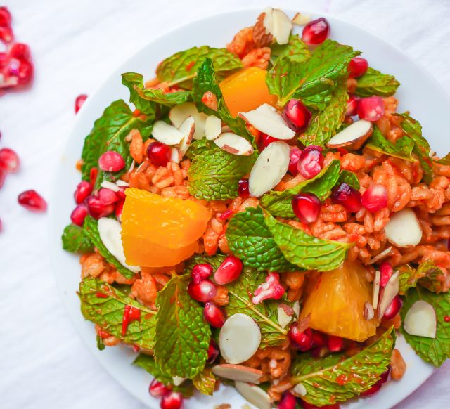 Pomegranate and Mint Moroccan Salad with Harissa Dressing